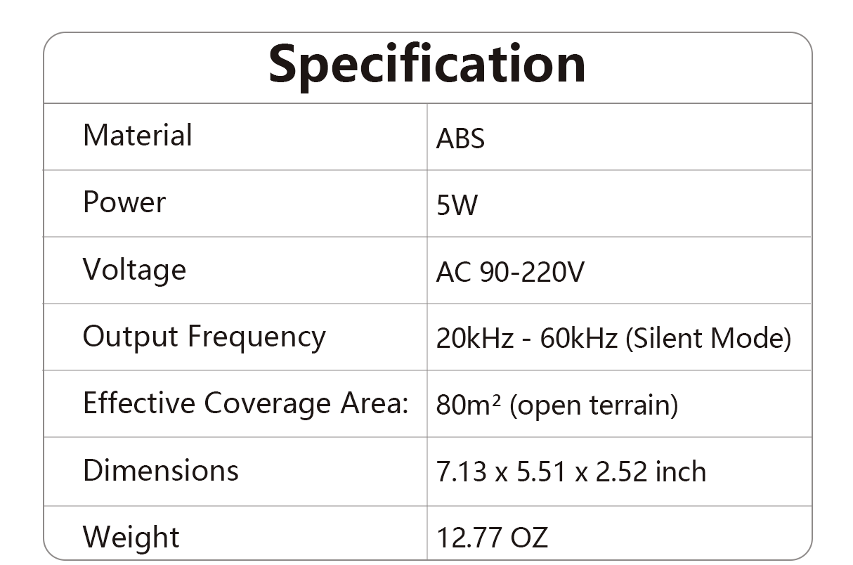 • Ultrasonic Mouse Control – Chemical-free, quiet, and safe to use.